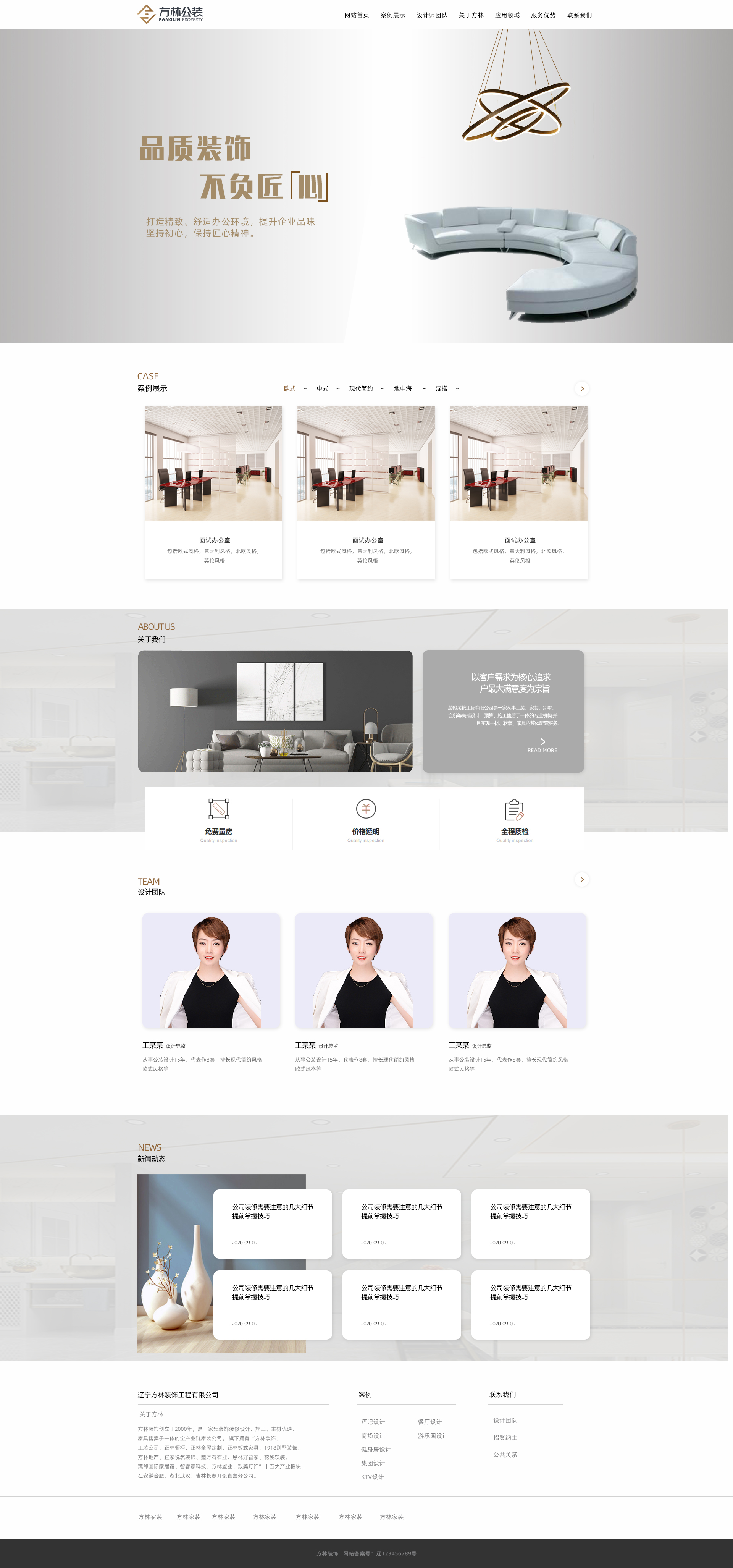栏目包含:网站首页、方林案例、设计团队、关于方林、应用领域、服务优势、联系我们